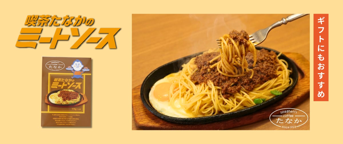 喫茶たなかのミートソース 昭和28年の創業以来、先代から受け継がれる岐阜中津川の老舗喫茶自慢の味 『喫茶たなかのミートソース』が待望のレトルト商品になりました! 半世紀にわたって愛され続ける絶品ミートソースを求めて遠方から訪れるファンは後を絶ちません。スパゲッティはもちろん、レタスと合わせたミート丼もお店人気のメニュー。 店主こだわりのミンチ肉の多さと肉の食感を再現するべくレトルト工場を多数探しまわり実現した他にはない肉感のあるミートソースをお楽しみください。 マスターの人柄も相まって、テレビ・雑誌・ネット等マスコミに取り上げられたのは数知れず...人気のミートソースを是非ご家庭でも!