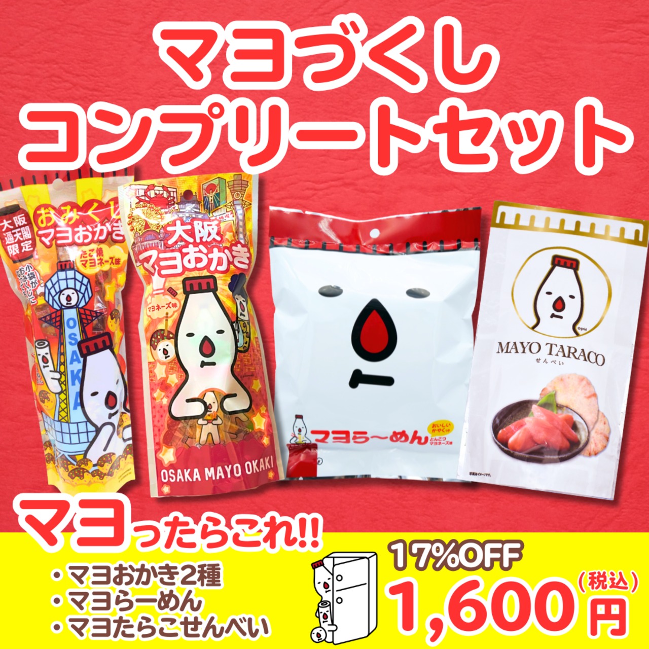 大阪土産の定番として愛され、累計500万個を突破した「マヨおかき」を中心に、ショップ自慢のマヨシリーズをひとつにまとめました!