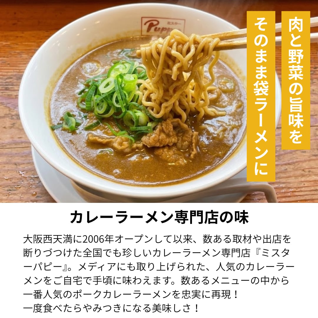 大阪西天満に2006年オープンして以来、数ある取材や出店を断りづつけた、あの!“ミスターパピー”のカレーラーメンがついに即席ラーメンとして発売です。