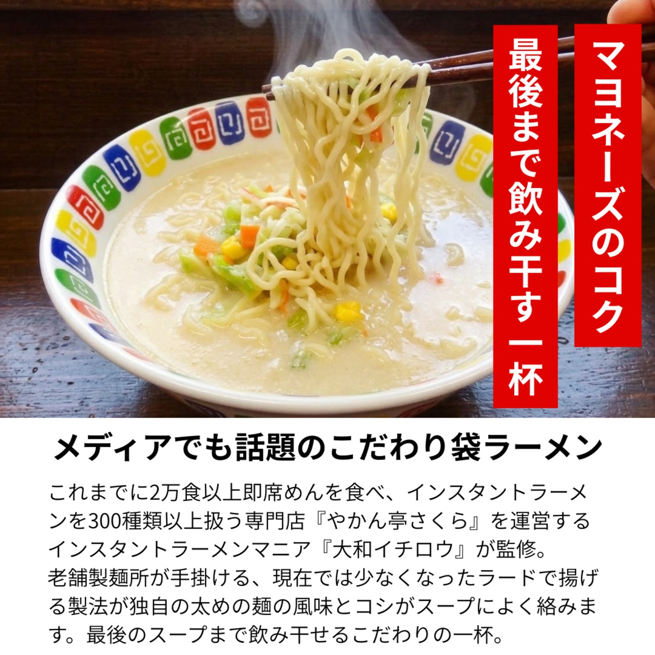これまでに2万食以上即席めんを食べ、インスタントラーメンを300種類以上扱う専門店「やかん亭さくら」を運営するインスタントラーメンマニア「大和イチロウ」が監修。